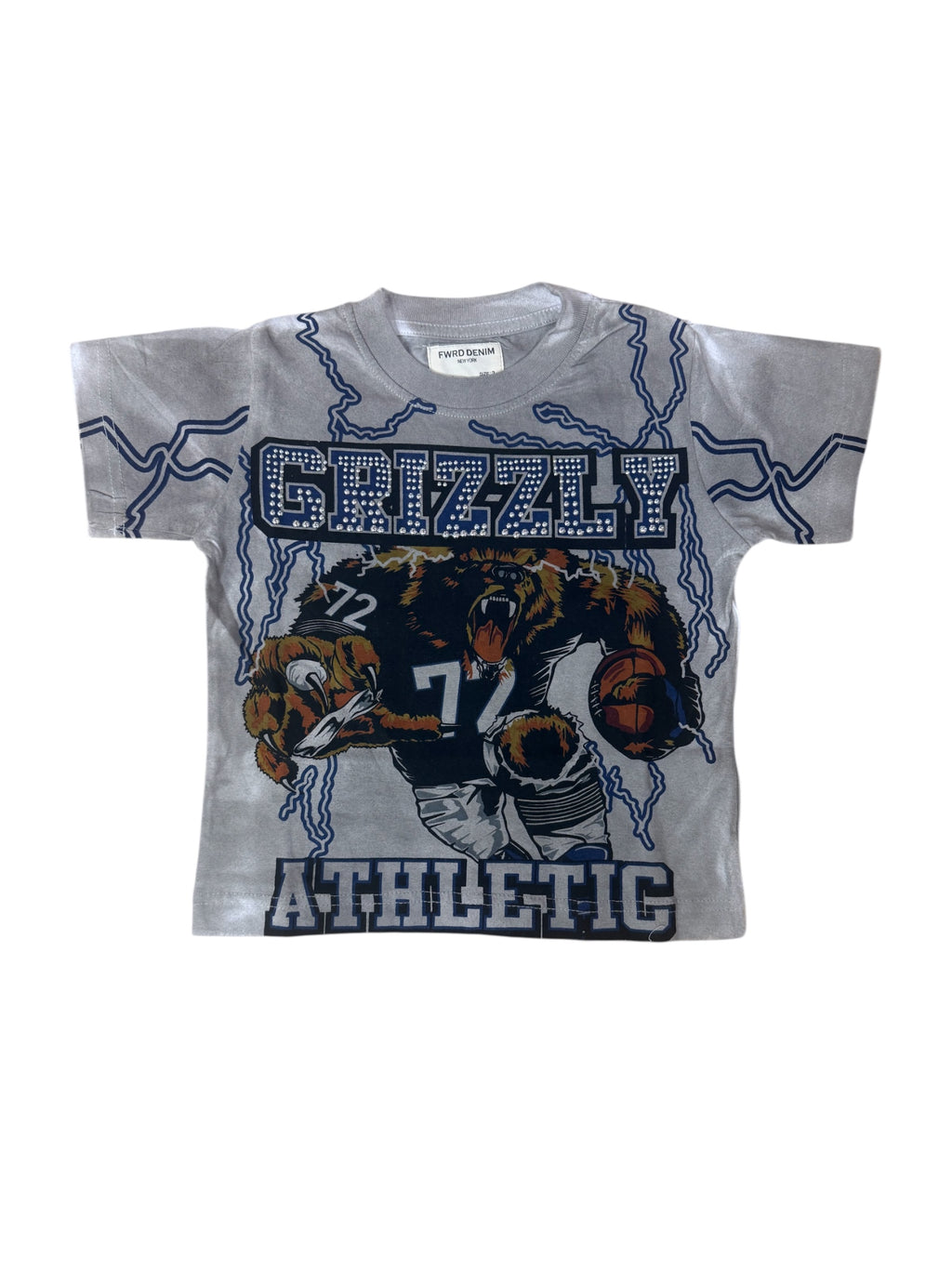FWRD Kids “Grizzly” Rhinestone Jersey T-Shirt (Grey/Royal) – Style FW-180826