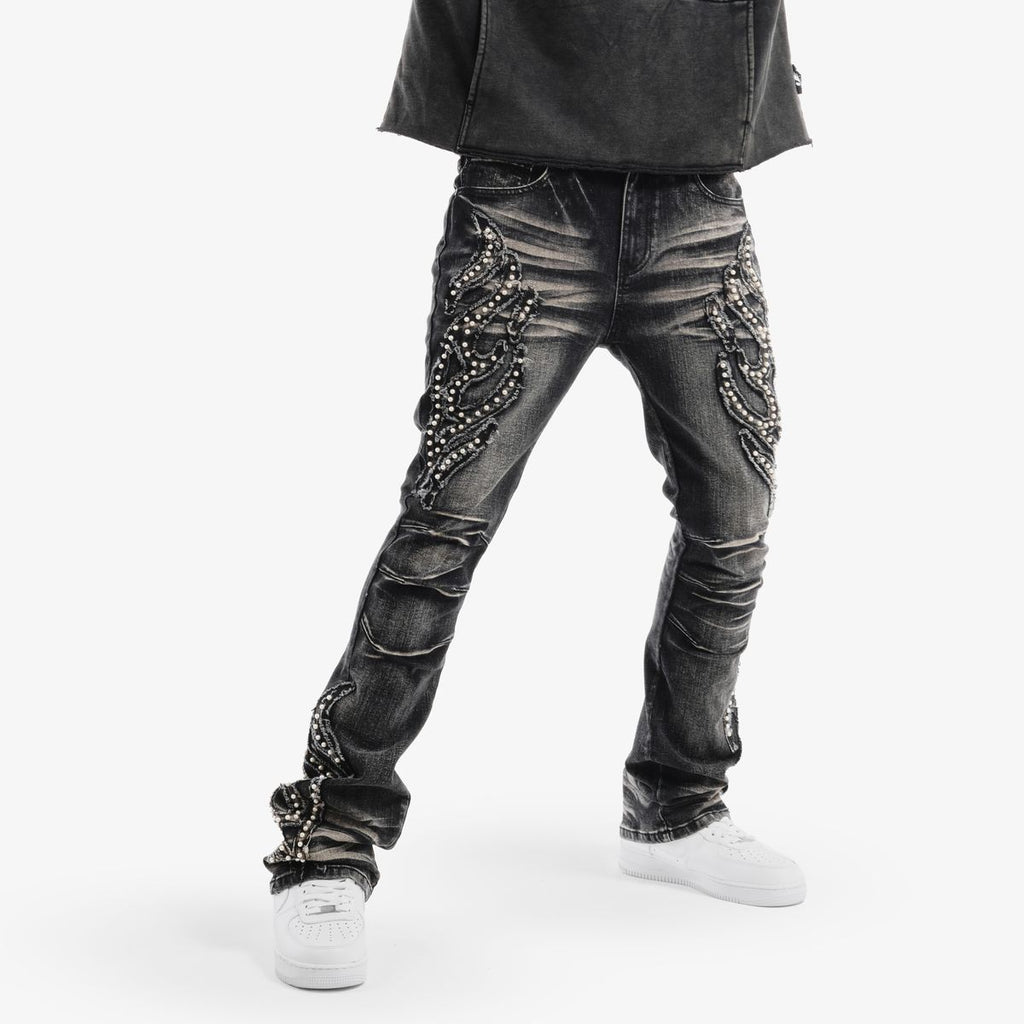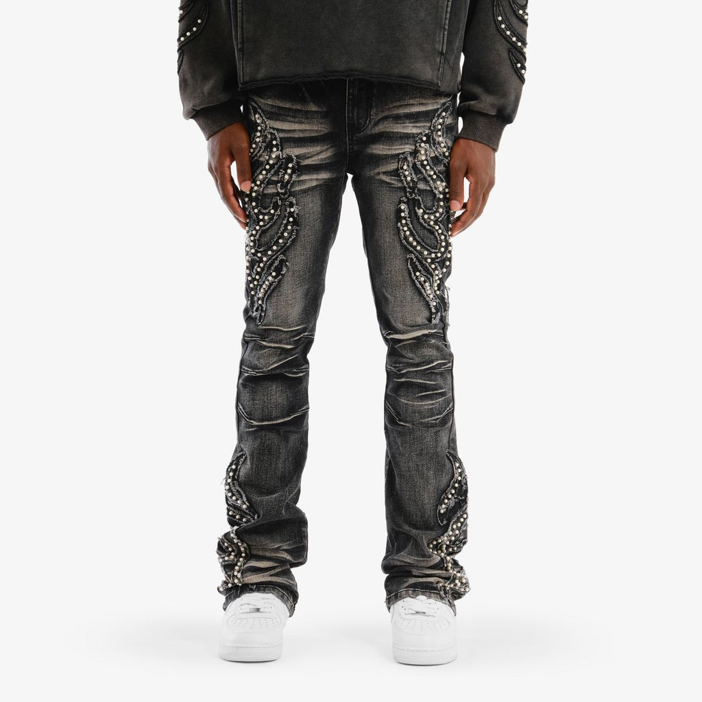 VOYAGE STUDIO 'PEARL' Flare Embroidery Carpenter Denim