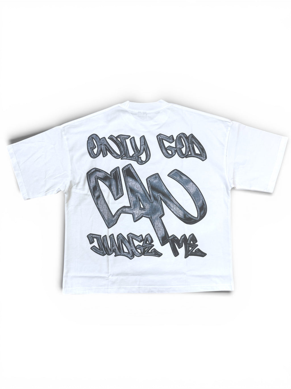 Silent Verse ‘Only God Can Judge Me’ Oversized Cropped T-Shirt (White)