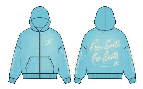 The KML ‘F.E.F.E’ Boxy Zip-Up Hoodie in Baby Blue is crafted from premium heavyweight French terry and designed with an elevated, structured silhouette featuring oversized drop-shoulders. Made from 100% organic cotton, this hoodie delivers a soft yet durable feel that becomes even better with wear and time.