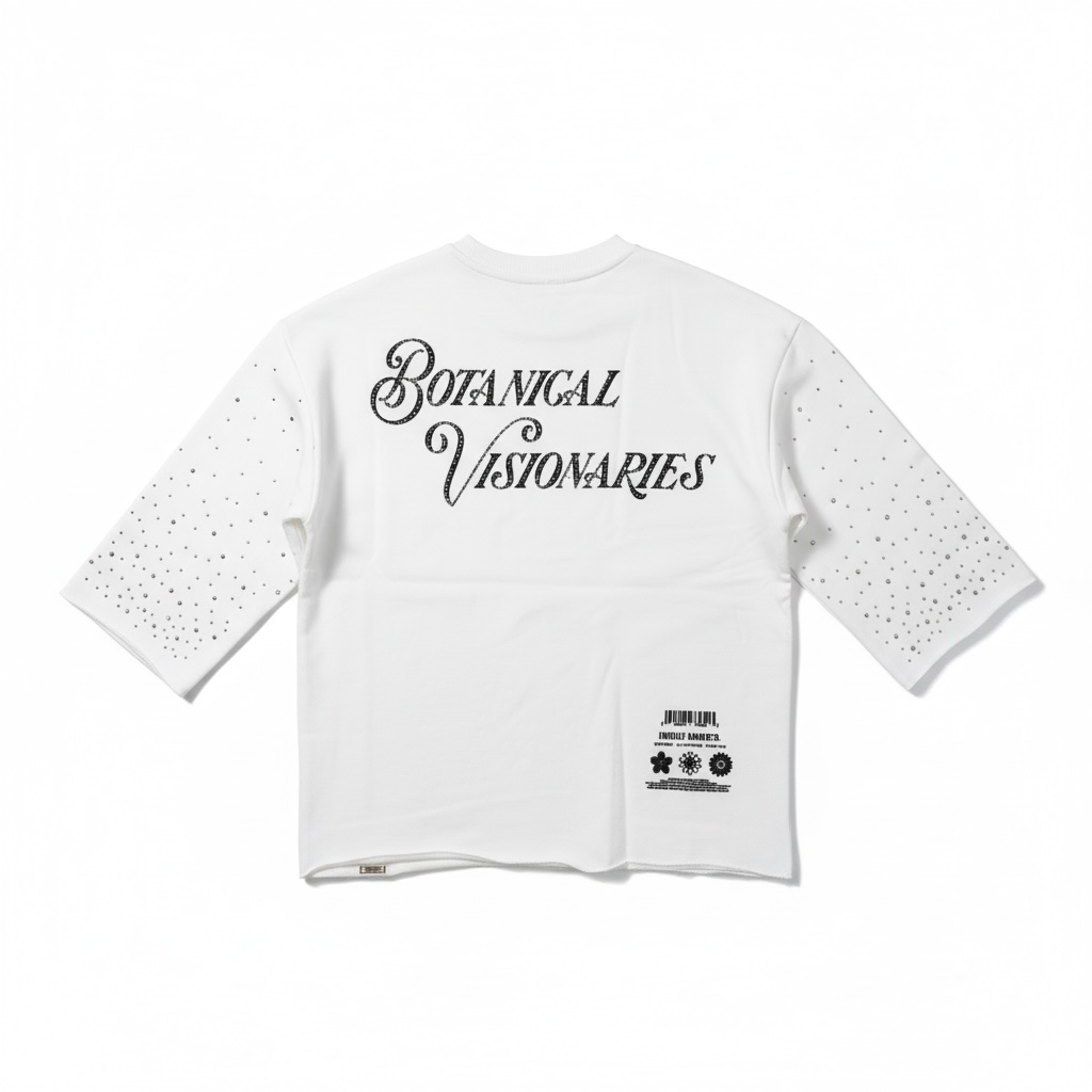 Highly Undrtd 'Thru The Smoke' Legacy Perm 3/4 Sleeve Rhinestone Cropped T-Shirt (White) HS6504