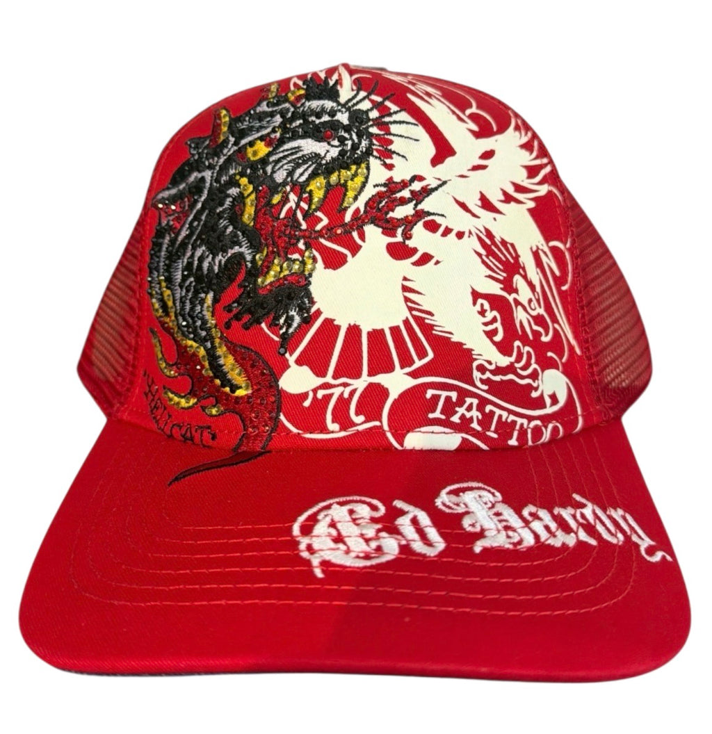 Ed Hardy 'Dragon' Rhinestone Trucker Hat (Red)