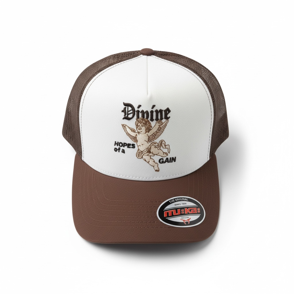 MUKA 'Divine' Trucker Hat (White/Brown) T5516B