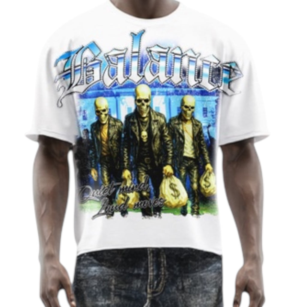 Papercut 'Balance' Oversized Cropped T-Shirt (White)