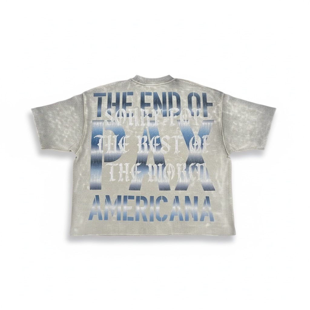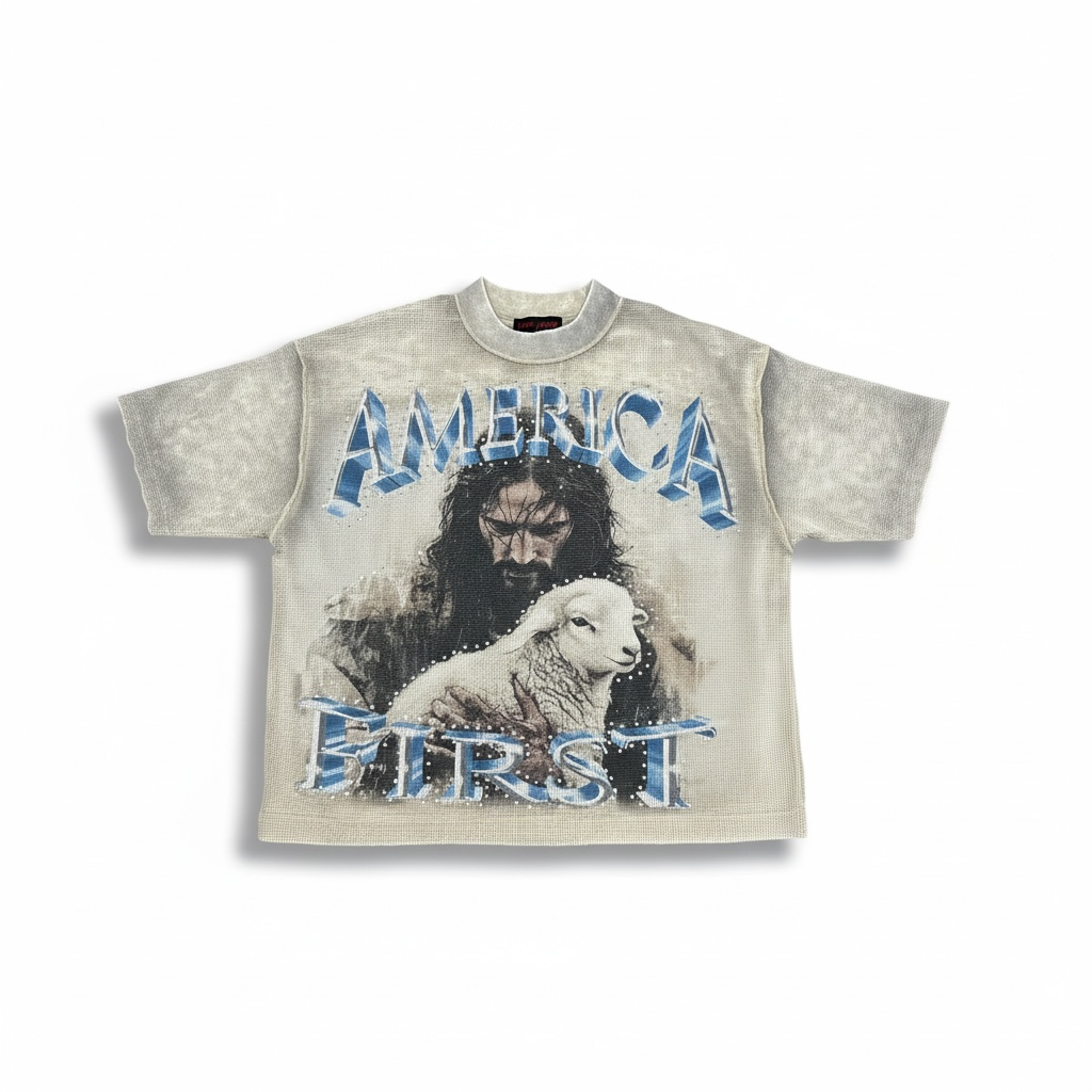 Rare Peace 'America First' Oversized Rhinestone Cropped Thermal Shirt (Light Khaki) RT6025