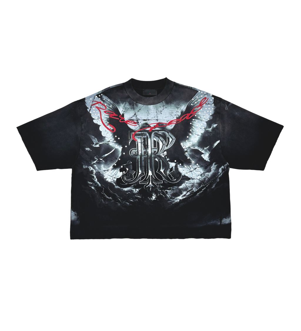 Rare Peace 'Heavenly' Oversized Cropped T-shirt (Black) RT5030
