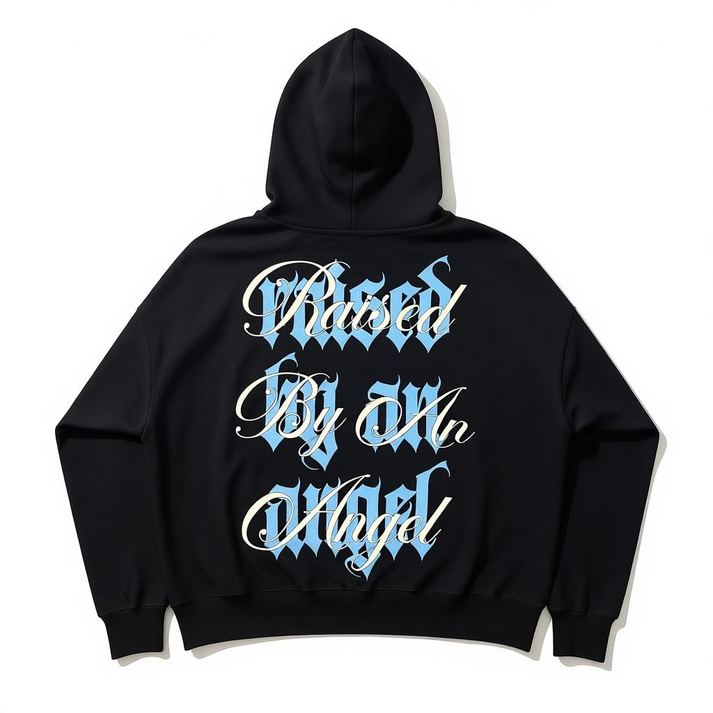 Perfect for shoppers searching for a heavyweight hoodie, French terry pullover hoodie, or modern casual graphic hoodie, the Silent Verse ‘Raised By An Angel’ Hoodie combines comfort, quality, and contemporary design.