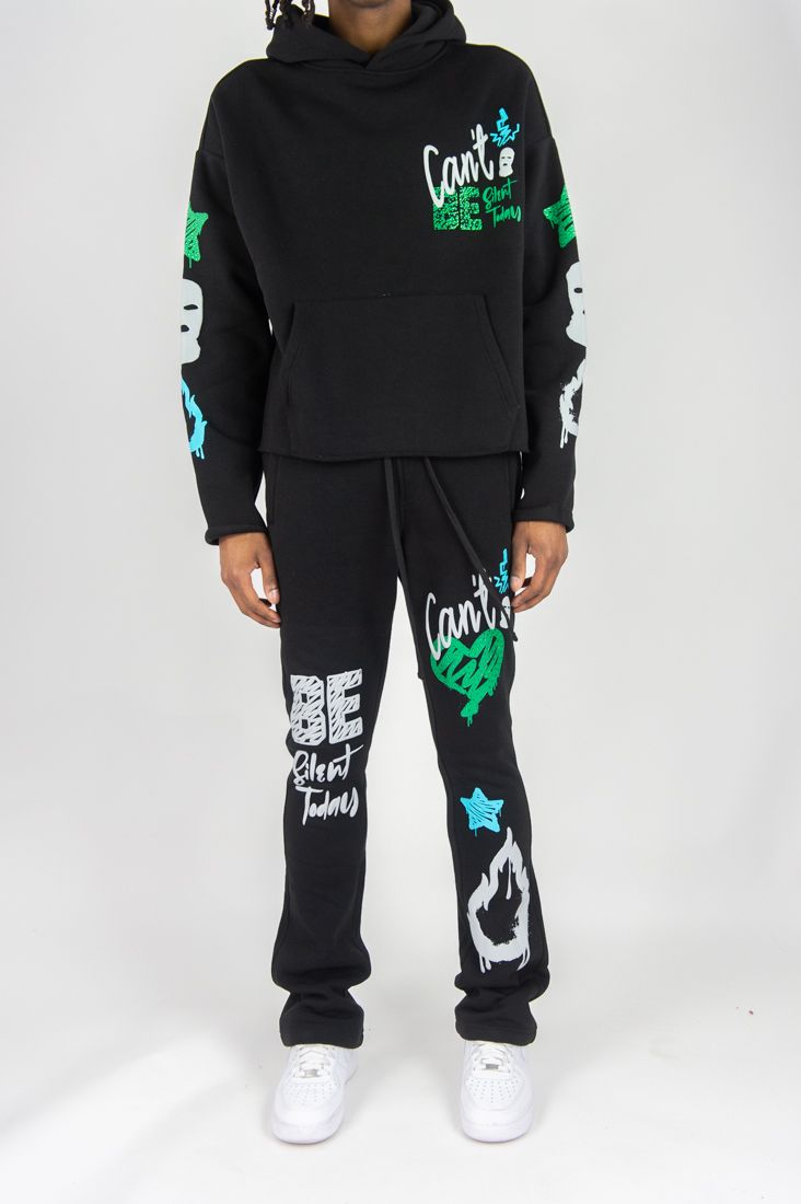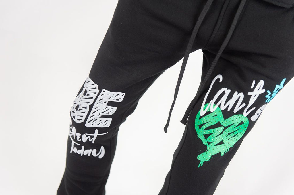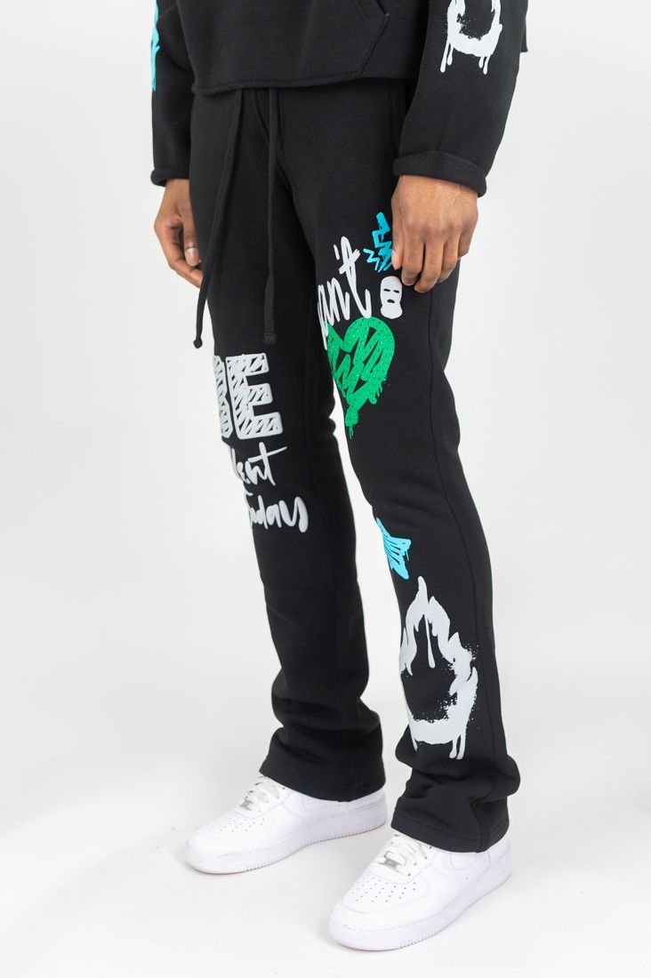 Rebel Minds 'Can't Be' Stacked Fleece Sweatpants (Black) 152-417