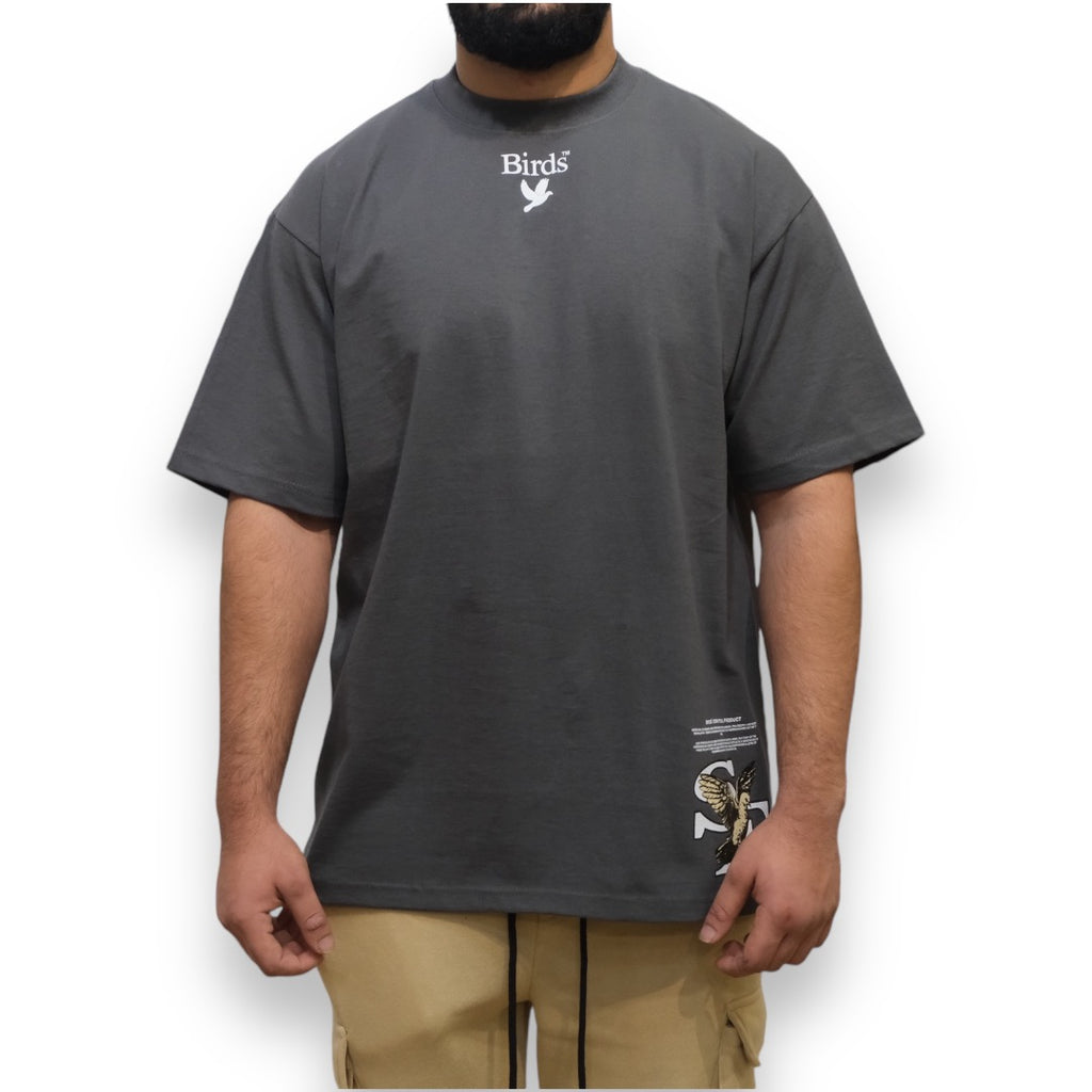 Short Sleeve cross-grain T-Shirt in Charcoal featuring the "Birds" Logo on front, "SF Birds " Logo on back. Crewneck collar. Standard fit.