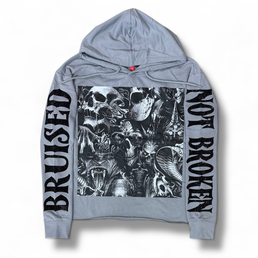 Black Pike 'Bruised Not Broken' Cropped Hoodie (Grey) FB2544