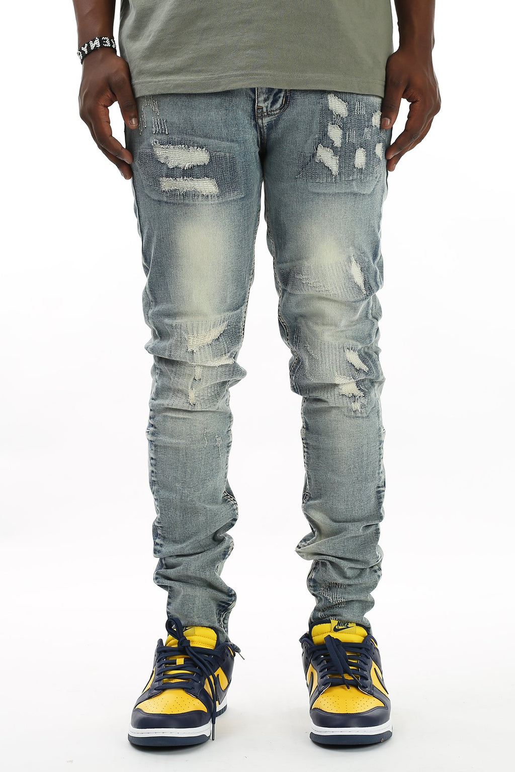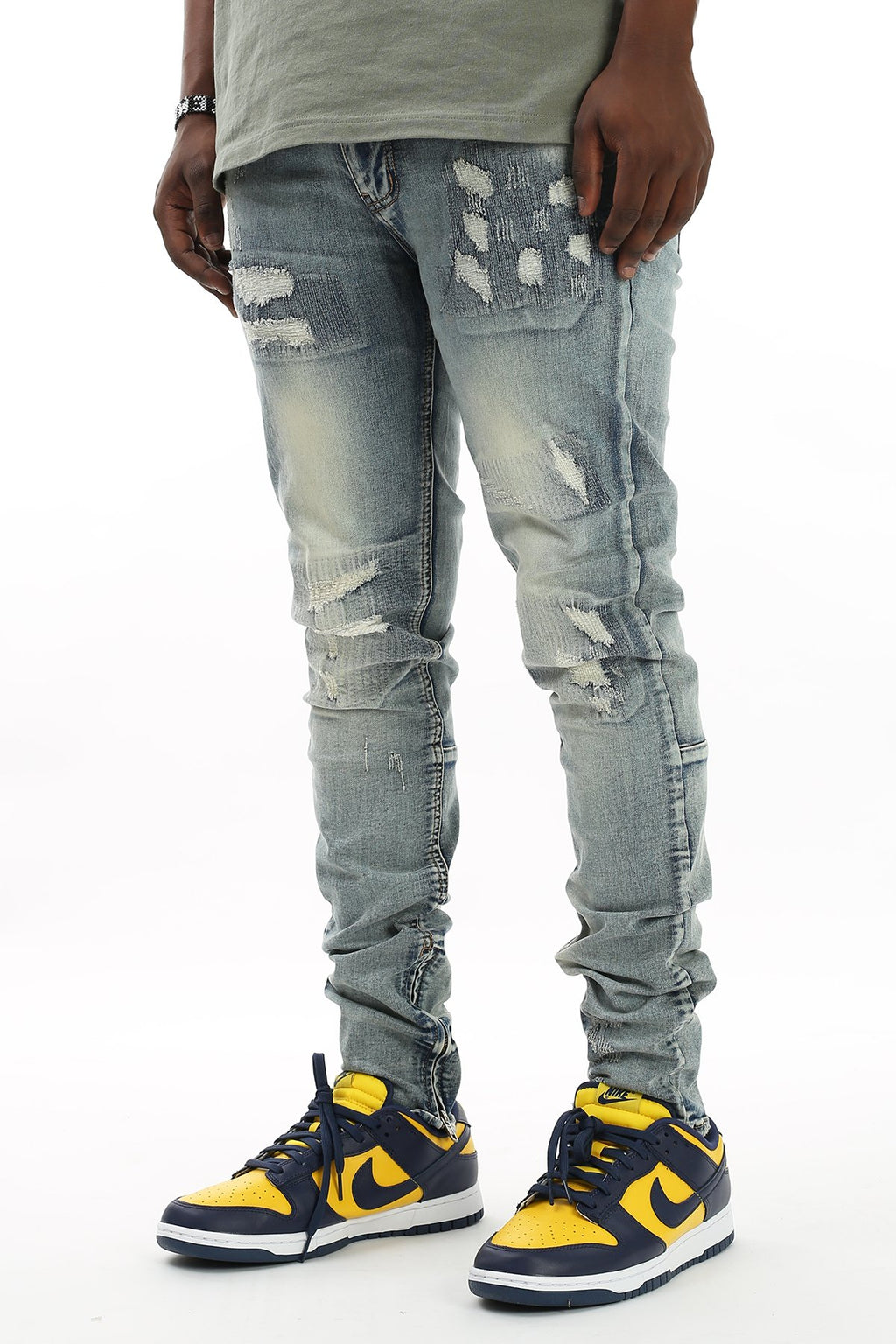 KDNK All-Over Stitch Ankle Zip Denim (Blue) KND4193